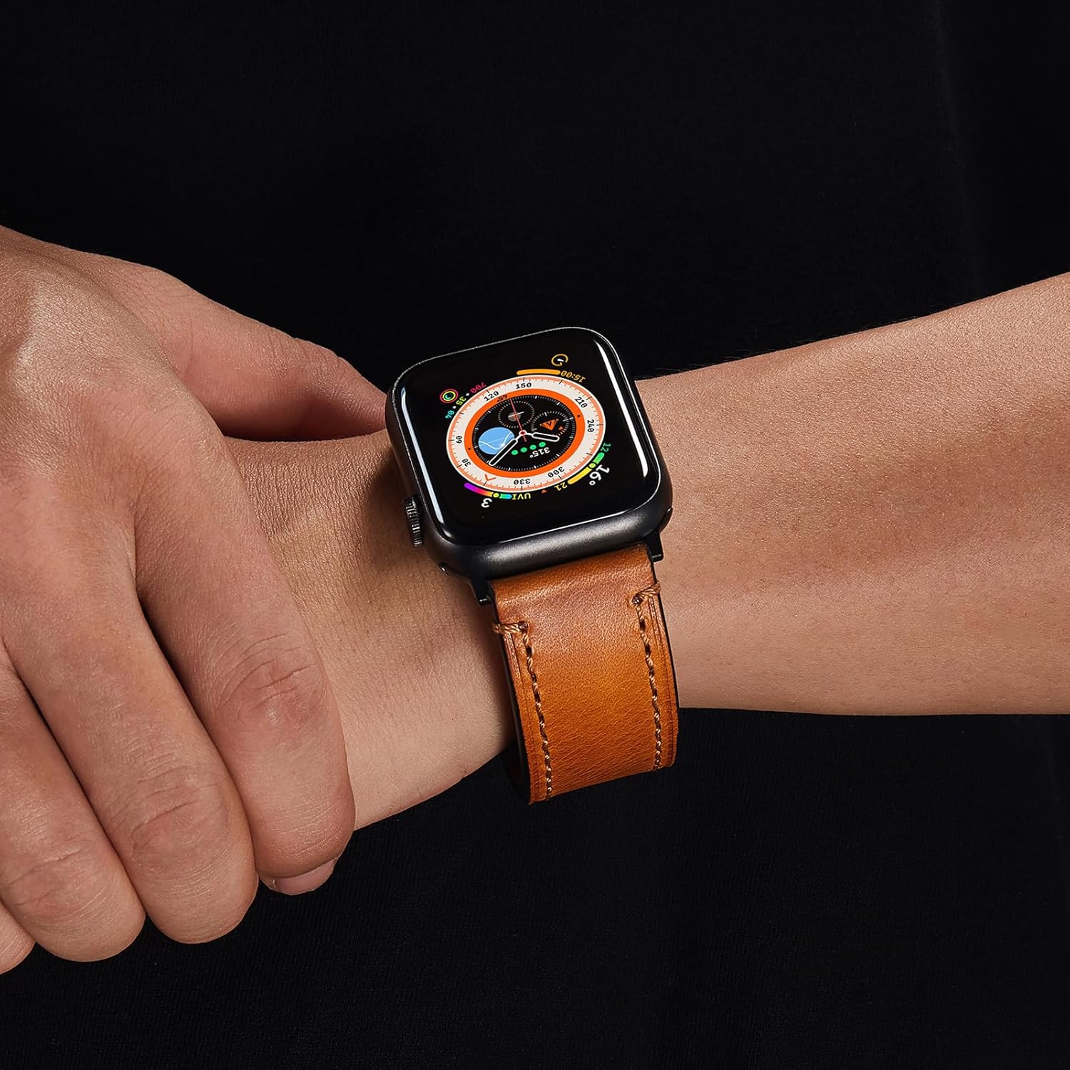 Material: 1. The leather watch band for Apple Watch is made of Italian oil waxed cowhide, particularly lustrous, durable and flexible, very comfortable to wear. 2.With the sheepskin lining, the running-in sheepskin will be as soft as cotton candy, providing a different wearing experience for your wrist. 3. "Folding buckles make replacement convenient and quick.". Compatible Models: 1. The band is compatible with Apple Watch 49mm 45mm 44mm 42mm for men, including Ultra SE2 series 9/ series 8/ Series 7/ series 6/ series 5/ series 4/ series 3/ series 2/ series 1. 2. Fits for 5.9 inch - 8.2 inch (150–215 mm) wrist.Italian leather straps are more suitable for formal occasions such as weddings, business meetings, business negotiations, and leisure vacations. They are the best match, something that nylon and silicone straps cannot offer. Perfect Gift: 1.Each watch strap is packaged in a gift box, which is more decent to send to friends and family.2.The classic and retro strap can be applied to a variety of social scenes such as weddings, birthdays, annual parties, Christmas parties and so on.